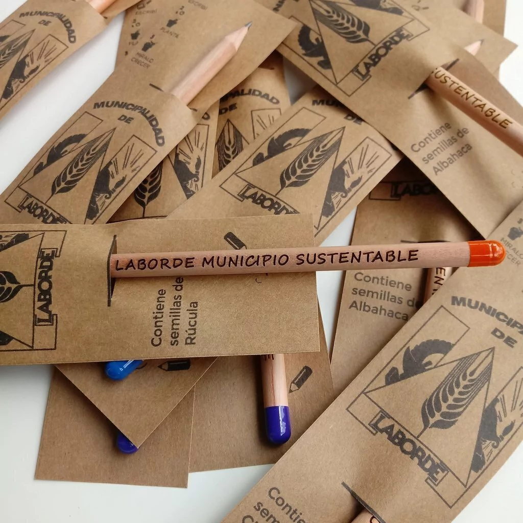 El precio incluye 50 lápices plantable grabados en láser y pack en papel kraft impreso a 1 color frente.